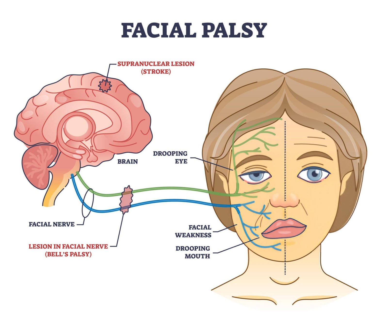 Facial palsy is defined as an inability to move the muscles of the face on one or both sides.