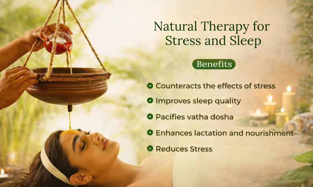 Siro means Head and Dhara means continues flow of liquid. In Sirodhara liquid can be oil, buttermilk, herbal oils, and medicated milk. In short Sirodhara is an Ayurvedic Therapy that involves gently pouring liquids over the forehead.